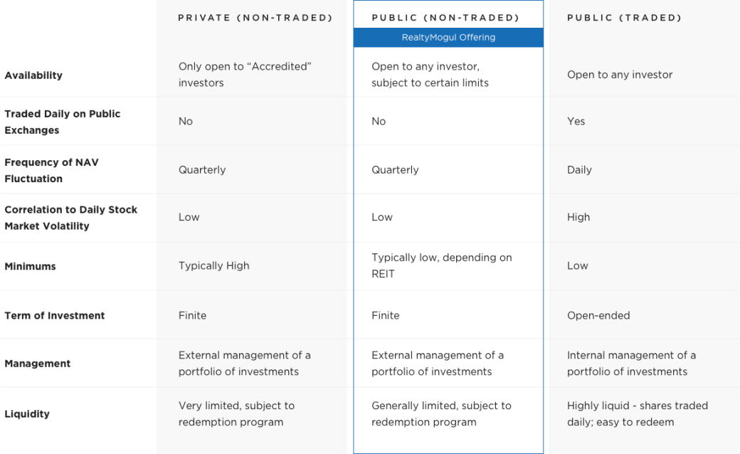 The RealtyMogul Income REIT and the RealtyMogul Apartment Growth REIT are both public non-traded REITs.